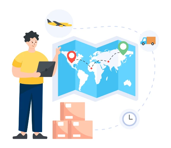 الشحن الجوي أو الشحن البحري من معظم الموانئ والمطارات